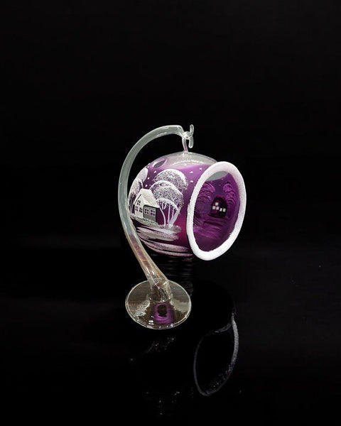 Purple Glass Terrarium Candle Holder, Hand Crafted in Ukraine, White Cabin Winter Wonderland, Wonderful Year Round