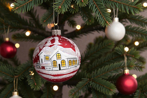 Frosted Blown Glass Ornament - Handcrafted - Brown Church Design