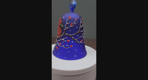 Blue Blown Glass Bell Ornament – Red Cardinal Design with Clapper