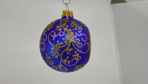 Blue Blown Glass Ornament - Handcrafted - Blue & Gold Refractor Design