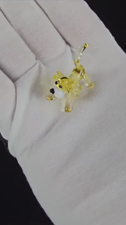 Amber Dog Figurine, Mini Glass Murano Quality Lampworking Glass Figurine, Hand Made In Ukraine, A Great Addition To Your Collection