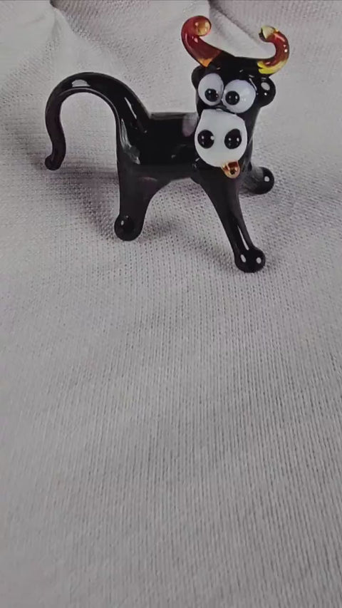 Black Cow Figurine, Mini Glass Murano Quality Lampworking Glass Figurine, Hand Made In Ukraine, A Great Addition To Your Collection