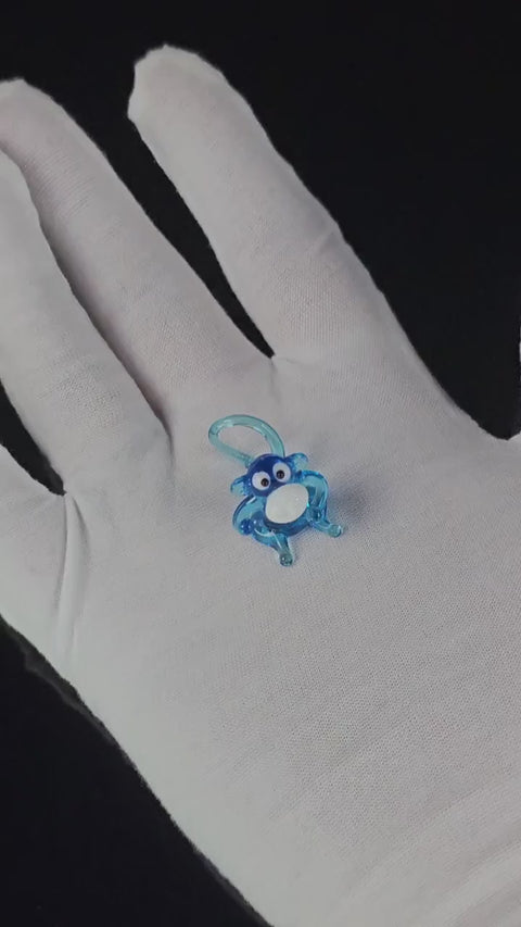 Light Blue Monkey Figurine, Mini Glass Murano Quality Lampworking Glass Figurine, Hand Made In Ukraine, A Great Addition To Your Collection