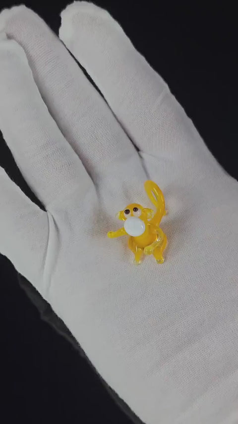 Yellow Monkey Figurine, Mini Glass Murano Quality Lampworking Glass Figurine, Hand Made In Ukraine, A Great Addition To Your Collection