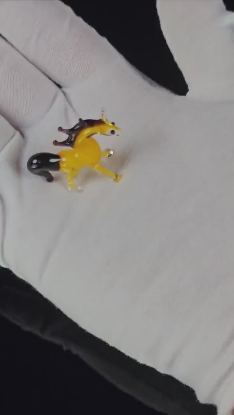 Yellow Horse Figurine, Mini Glass Murano Quality Lampworking Glass Figurine, Hand Made In Ukraine, A Great Addition To Your Collection