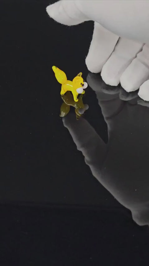 Yellow Cat Figurine, Mini Glass Murano Quality Lampworking Glass Figurine, Hand Made In Ukraine, A Great Addition To Your Collection